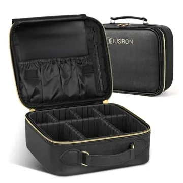 JUSRON Portable Travel Makeup Bag with Adjustable Dividers - Chic Black Storage