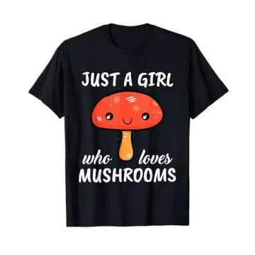 Pair it with our delightful mushroom-themed accessories like backpacks, socks, keychains, earrings, necklaces, costumes, pajamas, jewelry, pins, rings, dresses, onesies, and bracelets to complete your look and truly embrace your passion. The **Just A Girl Who Loves Mushrooms** design makes this t-shirt a standout choice for anyone who wants to celebrate their love for mushrooms boldly and humorously.