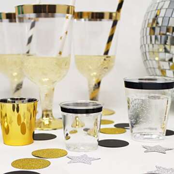 Just Artifacts 1oz Plastic Shot Glasses (120pcs, Metallic Black Rim) - Perfect for Every Occasion!