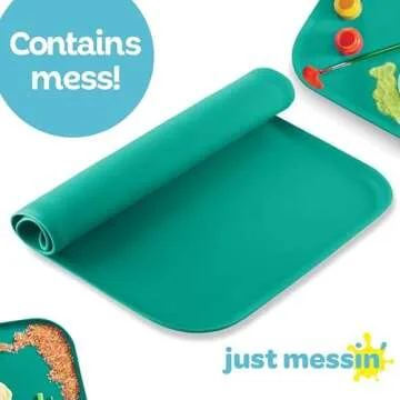 Just Messin' Silicone Art Mat for Crafts, Legos, Slime, Resin, Paint & Jewelry-Making, Table Protection w Raised Sides to Contain Mess, Non-Slip Heat Resistant, 16”x26” Mat with high .6" Edge, Green