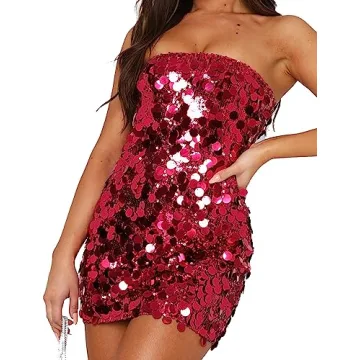 Show moreStep into the spotlight with the enchanting Just Quella Women Sequin Strapless Tube Bodycon Mini Dress in stunning Wine. This dress boasts a chic design that is exquisitely crafted from a lightweight, stretchy sequinned fabric, allowing you to flaunt your curves while staying comfortable throughout the night. Made with an impressive composition of 95% Polyester and 5% Spandex, it perfectly melds style and ease, empowering you to dance freely and enjoy every moment without a worry.
