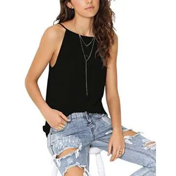 Show moreIntroducing the **Just Quella Women Sleeveless Knitted Cotton Camis Tank Tops**, an essential addition to your wardrobe that combines style, comfort, and functionality. This top, crafted from a premium blend of **60% Cotton, 35% Polyester, and 5% Spandex**, ensures a soft touch against your skin while allowing for breathable wear throughout the day. The sophisticated design features a chic high neck, delicate thin straps, and an alluring dipping 'V' back, delivering a contemporary flair that's perfect for various occasions. With a loose body silhouette, it not only offers freedom of movement but also creates a flattering silhouette for all body types. Whether it’s paired with leather-look jeans, ankle boots, or dressed down for a casual outing, this stylish tank top will surely become a favorite in your collection. Less