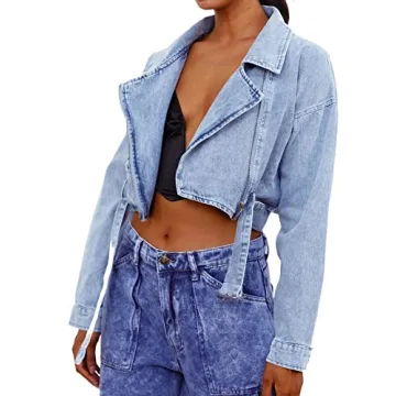 Introducing the Justalwart Jean Jacket Women Classic Vintage Motorcycle Denim Cropped Jacket, a wardrobe essential that beautifully combines style and function. Crafted from high-quality, thick denim, this cropped jacket features a zip closure and long sleeves with a chic button closure. Designed for versatility, it includes a comfortable waist belt that accentuates your silhouette while offering the freedom to layer over your favorite hoodie or tee. The stylish collars and...