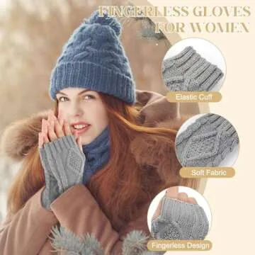 Justay Women Winter Warm Knit Fingerless Gloves Hand Crochet Thumbhole Arm Warmers Mittens