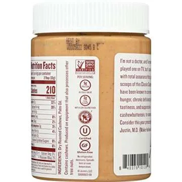 Justin's Classic Cashew Butter, Only Two Ingredients, No Stir, Gluten-free, Non-GMO, Responsibly Sourced, 12oz Jar