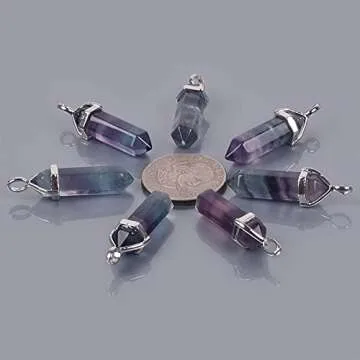Justinstones Natural Rainbow Fluorite Gemstone Hexagonal Pointed Reiki Chakra Pendant Necklace 20" High-grade Iron Gift Box