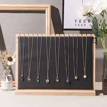 Justsoso Big Bamboo Necklace Display Stand, Pendant Necklace Jewelry Holder Rack, Chain Jewellery Organizer for Home or Selling Show (Black PU)