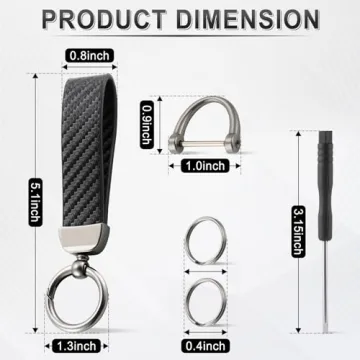 Show more Introducing the JUSTTOP Leather Keychain – the pinnacle of style and functionality combined! Crafted from premium quality leather, this keychain offers an unmatched handfeel that denotes sophistication and durability. The sleek zinc alloy keychain part ensures that it is not only lightweight but also corrosion-resistant, promising a long-lasting companion for your essential keys. With its cutting-edge carbon fiber sporty design, this keychain is more than just a utility item; it’s a fashion statement suitable for anyone who values both aesthetics and practicality. You’ll find yourself receiving compliments, transforming an everyday item into a conversation starter!
