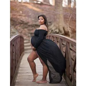 Show moreIntroducing the JustVH Maternity Off Shoulder Chiffon Gown, a stunning blend of elegance and comfort specifically crafted for expectant mothers. This enchanting long sleeve maxi dress is designed to celebrate the beauty of pregnancy through exquisite photography. The top features an elegant off-the-shoulder design that gracefully accentuates your neckline and shoulders, presenting a beautiful silhouette that radiates both charm and sophistication. The breathable elastic cotton ensures a comfortable fit, allowing you to move freely while preparing for your photo session.