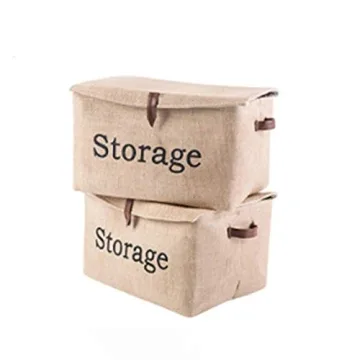 Show more Elevate your home organization with our Jute Storage Baskets with Lid, a stylish and practical solution designed for all your storage needs. Made from sustainable burlap, these collapsible bins offer a contemporary touch while ensuring durability for everyday use. Their large rectangle shape makes them perfect for a variety of items—from toys and laundry to clothing and books. Each basket features robust leather handles that complement the natural jute, ensuring easy transportation and a chic aesthetic in any room. Transform your clutter into a curated display with our elegant decorative baskets!