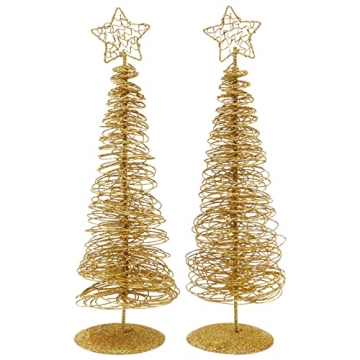 Juvale 2-Pack Mini Gold Christmas Tree, 10.5 Inch Tall Christmas Table Decoration, Ideal Gold Christmas Decorations for Tables, Desks, Bedrooms, and Living Rooms