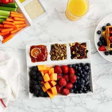 Juvale 4 Pack White Ceramic Divided Plates with Sauce Compartments – Fondue Plates for Appetizers, Dumplings, Fondue (10.25x8.6 Inch)