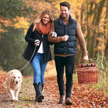 Juvale Wicker Picnic Basket Set for 4 with Utensils, Glasses, and Insulated Cooler Bag - Luxury Camping, Picnic Essentials and Outdoor Tableware for Family Gatherings