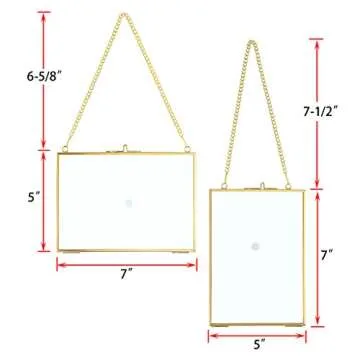 JUXYES Picture Frame, Set of 2 Brass Floater Frame, Golden Glass, 5 x 7 inches, Modern Art Design, Wall Hanging