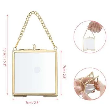 JUXYES Set of 4 Mini Brass Wall Hanging Photo Frame, Square Glass Hanging Picture Artwork Display Frame, Double Glass Floating Frame Style Gallery Wall Frame for Picture, Pressed Flower, etc
