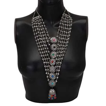 Jwellmart Indian Oxidized Silver Long Statement Partywear Multiline Necklace Fashion Jewelry for Women