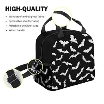Jwzrene Bats Lunch Box for Boys, 10L x 6.5W x 8.9H, Polyester Material, with Pocket and Shoulder Strap, Suitable for Work, Picnic, Camping