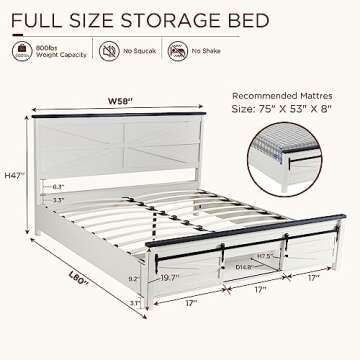 Show moreTransform your bedroom into a cozy retreat with the JXQTLINGMU Farmhouse Wood Bed Frame. Designed with chic barn doors on both the headboard and footboard, this full-size bed frame effortlessly blends modern sophistication with rustic charm, making it the perfect centerpiece for your modern farmhouse decor. Crafted from durable materials, this versatile bed frame not only provides immense style but also offers practicality. With its sliding barn door storage solution, you can store extra sheets, blankets, or your favorite books conveniently at the foot of the bed, keeping your space clutter-free and organized.