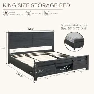When compared to other mid-range bed frames, the JXQTLINGMU Farmhouse Wood Bed Frame stands out due to its unique combination of rustic design features and practical storage solutions. Many competitors offer a basic bed frame or lack the aesthetic appeal of barn doors and textured finishes. This bed frame, combining sustainability with gorgeous beauty, ensures you are making a long-term investment in your home rather than settling for standard options that may need repair or replacement sooner.
