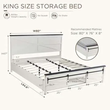 Show moreElevate your bedroom with the JXQTLINGMU King Farmhouse Wood Bed Frame, a striking fusion of modern sophistication and rustic charm. Designed to make a statement, this bed frame features beautiful sliding barn doors on both the headboard and footboard, instantly adding character to any bedroom decor. Crafted to complement modern farmhouse aesthetics, it transforms your space into a cozy retreat that captures the essence of rural tranquility.