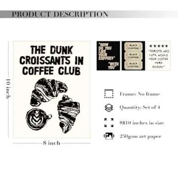 Show moreTransform your space into a coffee lover's paradise with the JXREQ Trendy Coffee Bar Wall Decor. This stunning set of four 8x10" posters is not just art; it's a statement piece that resonates with the heart of your coffee ritual. Each poster is carefully designed to complement various interior styles, making it the perfect addition to your kitchen, coffee bar, or office. Made from thick cardstock, these prints showcase exquisite quality with vibrant colors and legible coffee recipes, ensuring every cup is brewed with a smile.