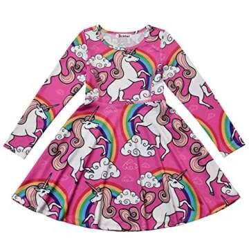 Jxstar Unicorn Dress Girls Dress 4t /5t Size 8 Pink Kids Rainbow Long sleeves140
