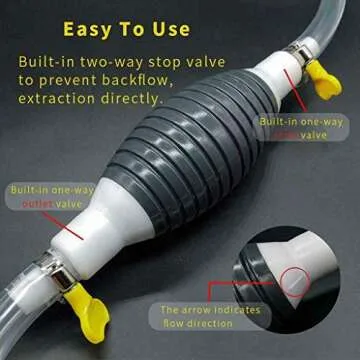 What sets this siphon pump apart is its user-friendly design. It features an ergonomic handle that provides a comfortable grip, reducing strain during prolonged use. Thanks to the 2-meter-long siphon hose, extracting liquids from one container to another has never been easier. Whether you're dealing with fuel transfers in your vehicle, household chores, or aquarium maintenance, this siphon pump simplifies the process, making it straightforward and hassle-free.