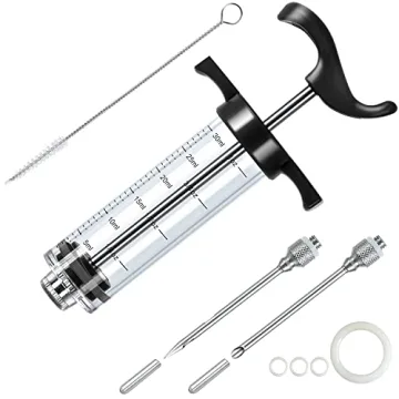 Show moreIntroducing the JY COOKMENT marinade injector kit, a game-changing tool for any home cook or grilling enthusiast looking to elevate their culinary creations. This innovative product is crafted from food contact safe material, ensuring that every marinade and seasoning is safe to enhance the flavor of your dishes. The durable construction is designed to withstand the rigors of injecting both meats and poultry, with sharp needles that easily penetrate even the toughest cuts. Whether you're preparing for Thanksgiving, Christmas, or a summer BBQ, this marinade injector is guaranteed to enrich your dishes with mouthwatering flavors.
