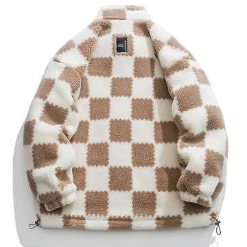 JYHBHMZG Drawstring Winter Warm Coat - Plaid Stripes Soft Windproof Outerwear, Zipper Fleece Jacket for Men and Women EN8 XS