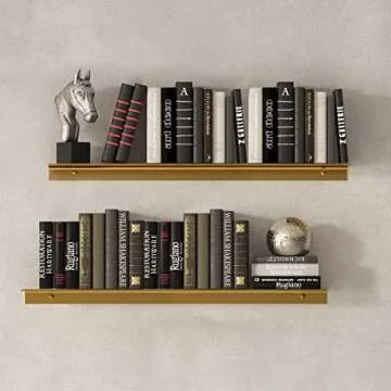 JYL HOME Modern Floating Shelf Wall Mounted Heavy Duty for Living Room Bedroom Bathroom, 23.6 Inch, Gold, 2 Pack