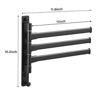 JYL HOME Swivel Hand Towel Bar - 3-Arm Matte Black Towel Rack Holder