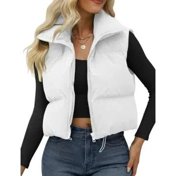 JZC Women's Cropped Puffer Vest Zip Up Stand Collar Sleeveless Outerwear White Small