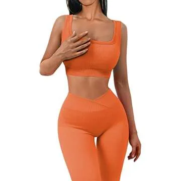 JZC Seamless Ribbed Women's Workout Set – High Waist Leggings in Orange
