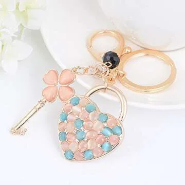 Jzcky Shzrp Cute Heart and Key Shape Crystal Rhinestone Keychain Key Chain Sparkling Key Ring Charm Purse Pendant Handbag Bag Decoration Holiday Gift(White)