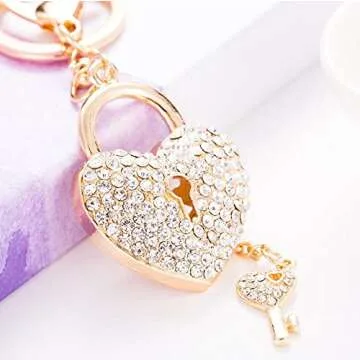 Jzcky Shzrp Love Lock and Key Crystal Rhinestone Keychain Key Chain Sparkling Key Ring Charm Purse Pendant Handbag Bag Decoration Holiday Gift
