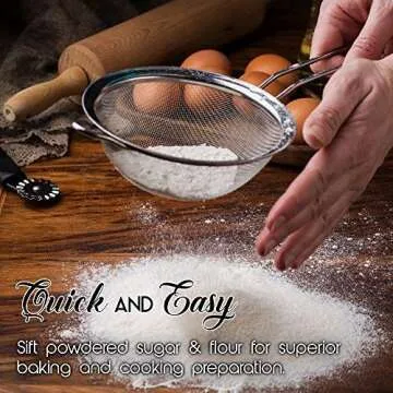 K BASIX Set of 3 Fine Mesh Strainer for Kitchen - Stainless Steel Strainers for Pasta, Flour Strainer, Vegetable Strainer, Food Strainer Tea Sift, Sieve Flour - Silver Sifter Strainer