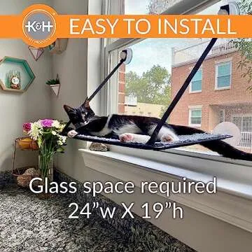 K&H Pet Products EZ Mount Cat Window Perch for Large Cats, Sturdy Kitty Sill Window Hammock Bed, Steel Frame, Sturdy Suction Cups, Washable Shelf Cover, Foldable - Fits 27"W X 23"H Glass Spaces