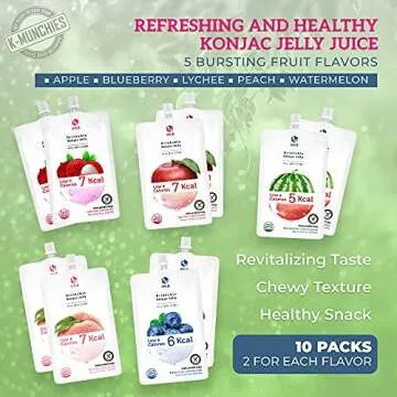 Show moreDiscover the indulgent satisfaction of K-Munchies Jelly.B, a delightful assortment of fruit-flavored konjac jelly juice. This unique snack not only tantalizes your taste buds but is also infused with collagen to nourish your skin from the inside out. Available in five irresistible flavors - Apple, Peach, Watermelon, Lychee, and Blueberry, these jellies are perfect for anyone looking to enjoy a guilt-free treat. Each pack contains ten convenient servings, making it easy to enjoy at home, at work, or on the go.
