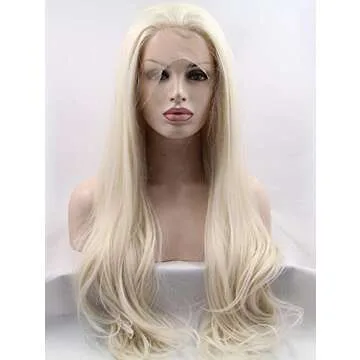 K'ryssma® Platinum Blonde Glueless Synthetic Hair Lace Front Wigs Long Natural Straight Half Hand Tied Replacement Full Wig For Women Heat Friendly 22inch
