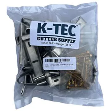 Introducing the K-TEC 4 Inch Hidden Gutter Hanger Bracket with Screw (25 Pack), the ultimate solution for securely mounting your 4 inch steel or aluminum gutters! Say goodbye to the hassles of traditional gutter installations and embrace the ease and efficiency that K-TEC brings to your home maintenance. Designed specifically for use with most steel or aluminum gutters (please note, these hangers are not compatible with plastic gutters), these hidden hangers provide a clean, seamless appearance...