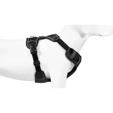 The harness features adjustable straps at both the neck and chest, providing a comfortable fit for your dog.