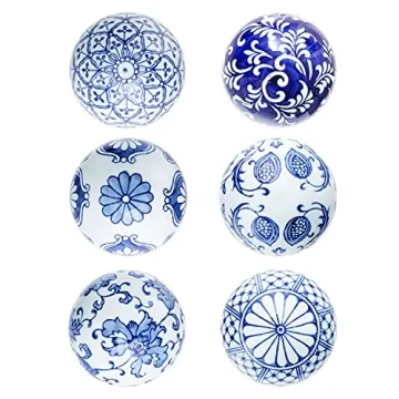 Show moreIntroducing our stunning decorative porcelain balls that will elevate your home decor to new heights! These charming orbs, crafted from smooth and glossy white porcelain, showcase a beautiful array of mixed blue designs, making them a versatile accent for any space. Measuring 3 inches in diameter, this set of 6 small ceramic spheres can effortlessly enhance your vases, baskets, bowls, or wooden trays, infusing elegance and style into your living environment.