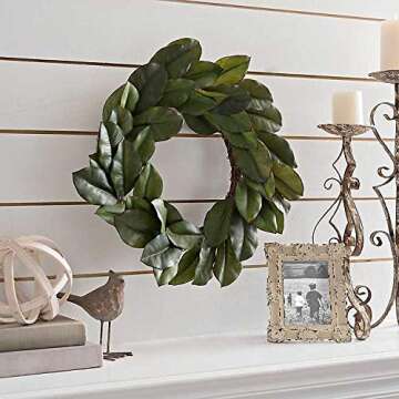 Ka Home Large Green Magnolia Leaf Wreath | Natural Looking Decoration for Summer, Spring, Fall or Year Round | Hangs on Wall, Fireplace, Door - Indoor or Covered Outdoor | 24 inch