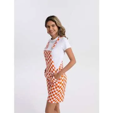 Show moreIntroducing the KACAOAC Women's Casual Checkered Bib Overalls Shorts, a perfect blend of playful style and functionality tailored specifically for the modern woman. Designed with a vibrant orange and white checkered pattern, these adjustable strap cotton shortalls will instantly elevate your casual attire to new fashion heights. The combination of high-quality cotton ensures both comfort and durability, making these shortalls an essential addition to your summer wardrobe. Whether you're heading out with friends or enjoying a relaxed day at home, these overalls provide unrivaled versatility and a flattering fit.