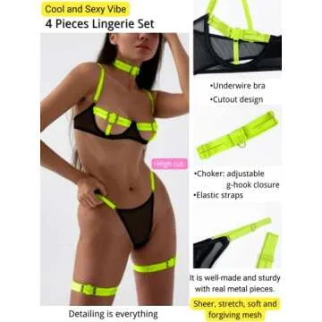 Kaei&Shi Glow Under Black Light, Party Boudoir Outfits, 4PC Peekaboo Lingerie