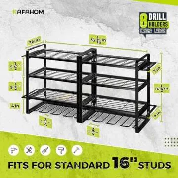 KAFAHOM Power Tool Organizer, 8 Drill Holder Wall Mount, 4 Layers Garage Tool Organizers and Storage Rack, Tool Shelf with Screwdriver/Plier/Hammer Holder