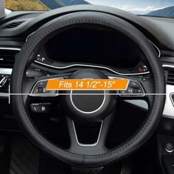KAFEEK Steering Wheel Cover - 15 inch, Microfiber Leather, Anti-Slip, Black Lines