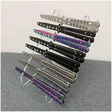 Transform your living space into a showcase with our stunning KAFENDA Butterfly Knife Display Stand, specifically designed to hold up to 8 blades beautifully. This exquisitely crafted acrylic display solution is perfect for collectors and enthusiasts looking to organize and elevate their knife collection. With its elegant tiered design, it allows you to exhibit your favorite knives dynamically, ensuring each piece can be displayed at its best angle and making your collection more engaging...