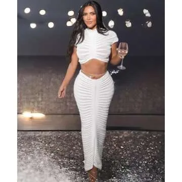 - Design: Features a trendy mock neck short sleeve crop top paired with a low waist bodycon maxi skirt for a sexy summer look.