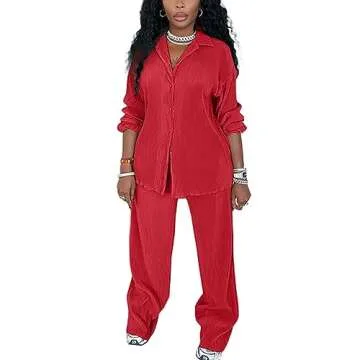 Show moreIntroducing the Kaimimei Casual 2 Piece Outfit for Women, crafted from premium soft and skin-friendly polyester material that elevates your comfort while ensuring that you stay stylish. This stunning matching set encompasses a relaxed, sophisticated look that’s perfect for any casual occasion. The breathable and lightweight fabric allows for all-day wear, making it an essential addition to your wardrobe. Enjoy the perfect blend of comfort and chic design with this outfit featuring a stylish button-down shirt paired with fashionable flare pleated wide-leg pants.
